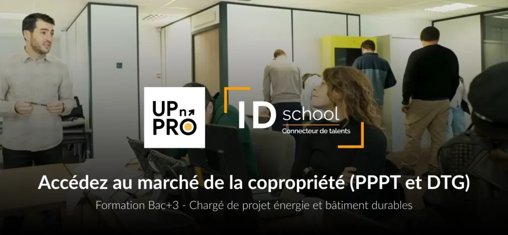 Grâce à notre partenaire Up n’PRO, formez-vous au RNCP39748, certification de niveau 6 (équivalent Bac+3) Chargé de projet énergie et bâtiment durables, indispensable pour devenir signataire de prestations de 3PT/DTG.